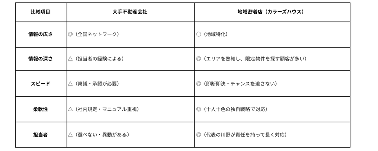 2. 【徹底比較】大手不動産会社 vs 地域密着店(カラーズハウス)