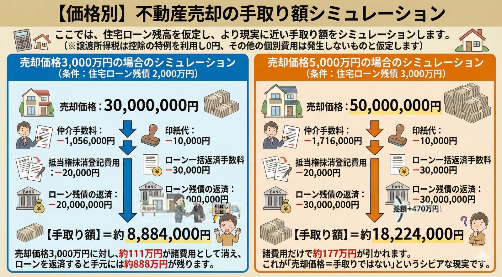 売却価格=手取りではない!不動産売却の「諸費用」計算シミュレーションと内訳一覧