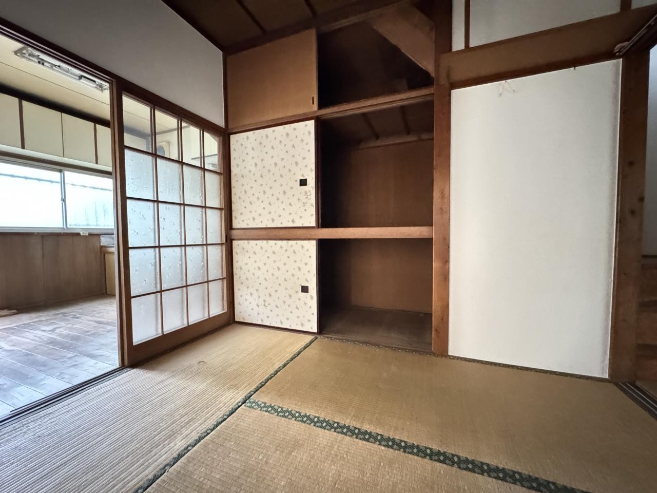 直接布団を敷いて寝ることができる和室。寝具が収納できる押入付きです。